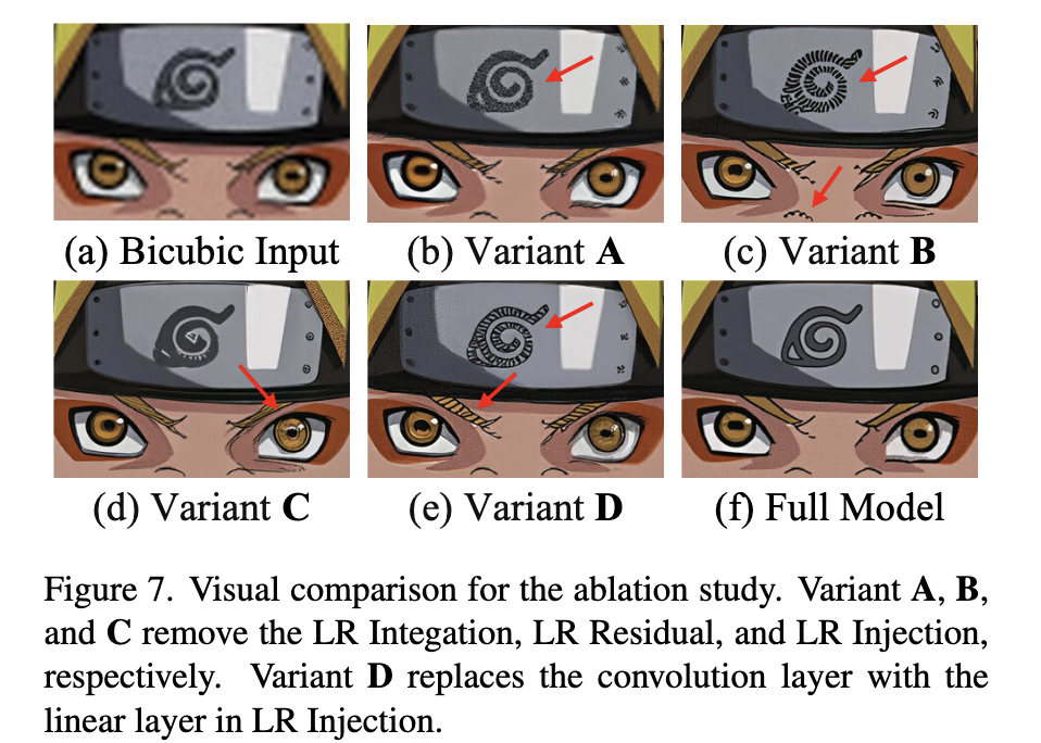 深层出现 artifact → 证明 residual 对稳定 LR Stream 至关重要。